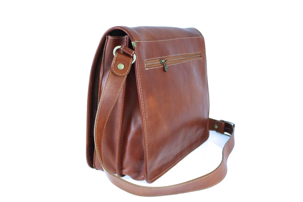 Sac bandoulière en cuir de vachette aspect vieilli , vous pouvez ajuster la bride. Il y a une poche à l’arrière, deux grands compartiments intérieur avec une poche zippée , une partie pour insérer vos crayons, une autre poche pour les clefs, cartes, téléphone, etc. Très bien organisé, bon format, pratique et à la fois tendance chic et sportwear.