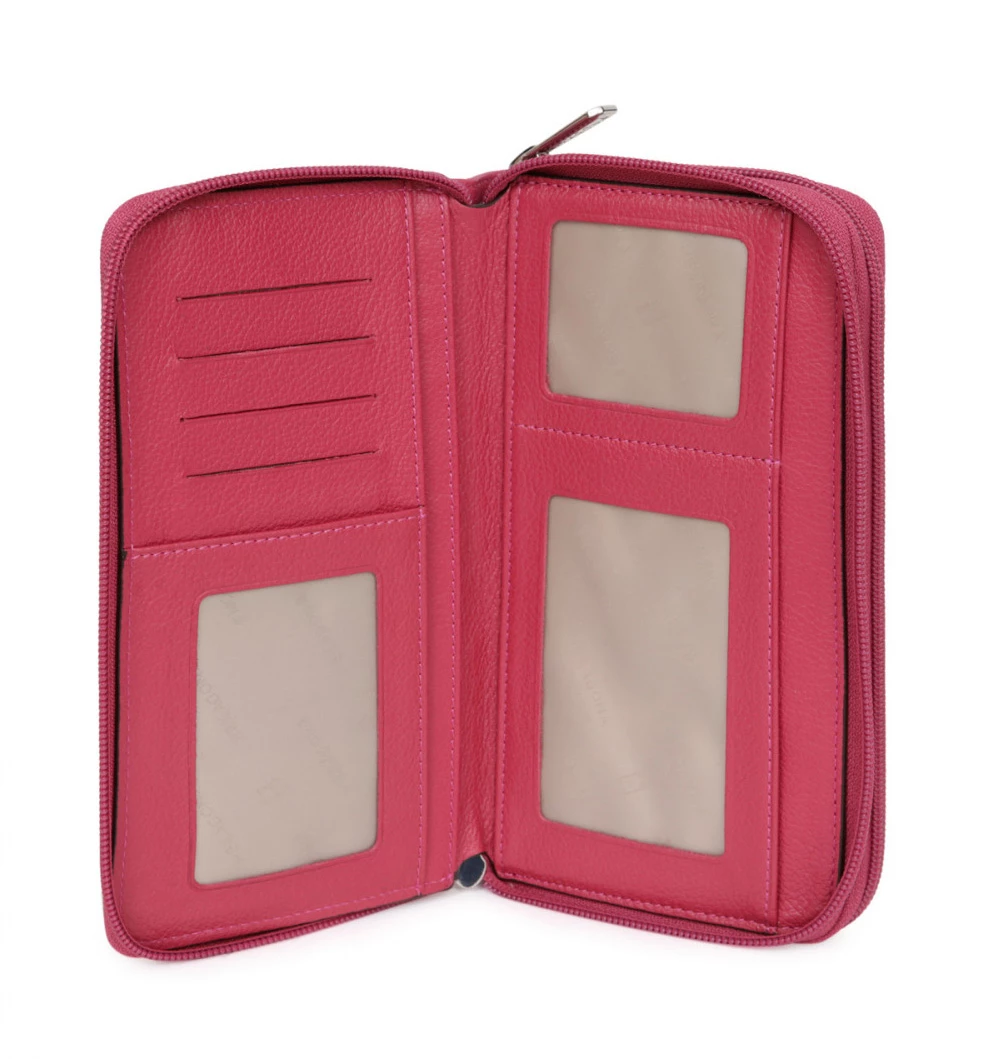 Compagnon de voyage en cuir de vachette . Très bien organisé, avec ses nombreux rangements, pour les cartes, les billets, la monnaie, les papiers , tous est à porté de main .