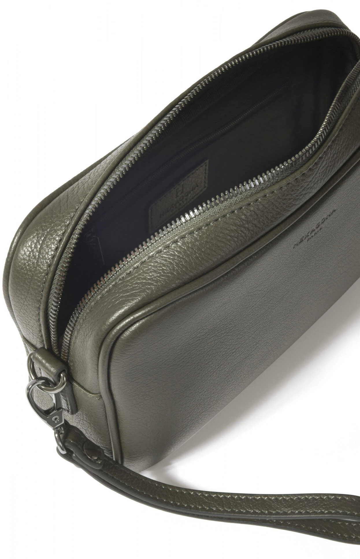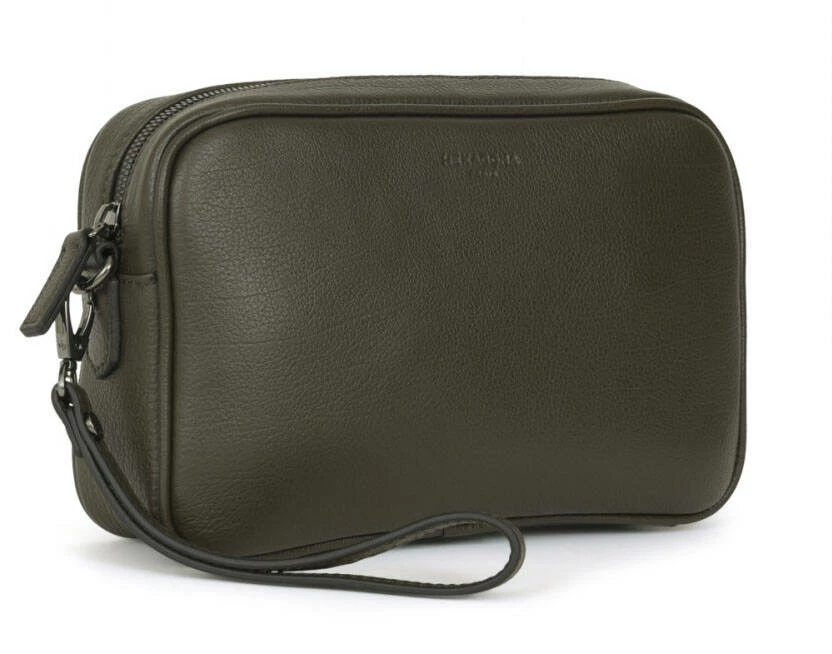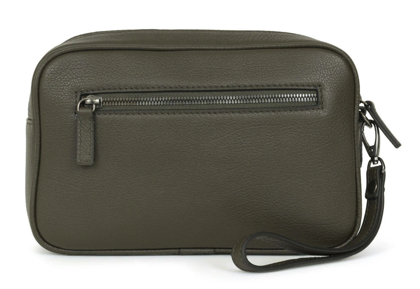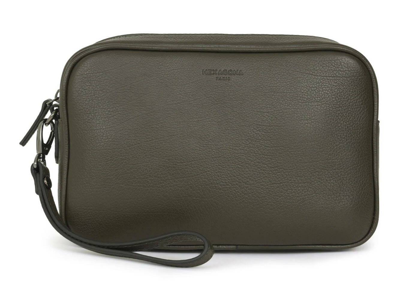 Pochette dragonne en cuir de vachette aspect grain buffle de la marque hexagona. Très sobre, une ligne assez sport qui convient à toutes générations. Pratique pour vos sorties et/ou week end . Cette pochette cuir se ferme à l’aide d’un zip, elle est entièrement doublée, sous le dessus , vous avez des finitions canons de fusil pour protéger le cuir . Sur l’Extérieur : on lui retrouve Une poche arrière plate zippée et à l’Intérieur , il y a Un compartiment principal avec une poche plate zippée et une poche plate. Sa dragonne est amovible et fait environ 36 cm.