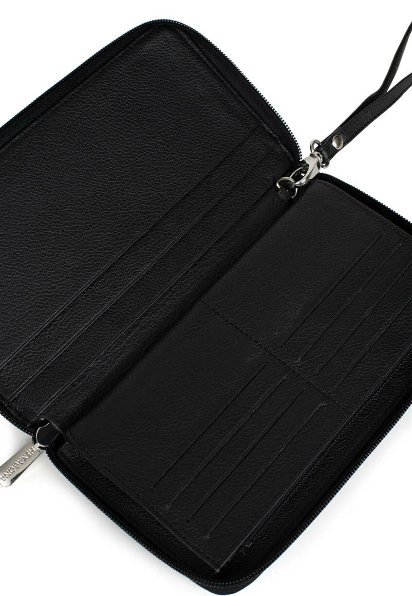 Porte carte/ billet en cuir de vachette grainé . Il se ferme par un zip, vous avez des rangements cartes, le porte monnaie, rangement billets. Vraiment pratique .