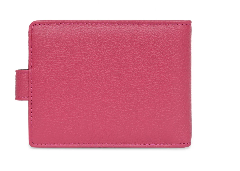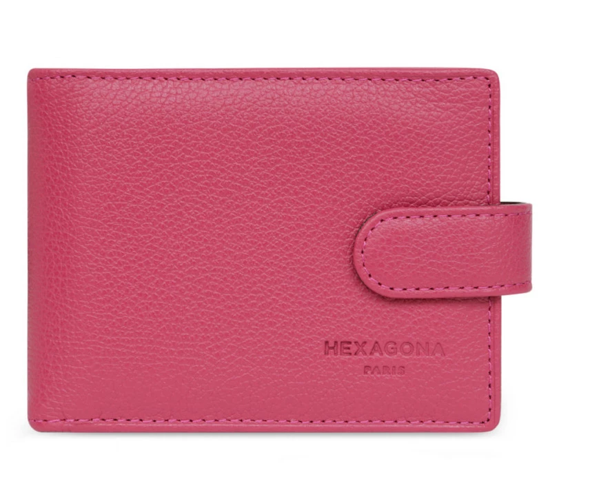 Porte-cartes en cuir de vachette grainé , Fermeture à patte à pression, Doublure : Synthétique, Finitions argent brillant. On retrouve un volet, deux poches plates à vue transparente et un feuillet plastique mobile de seize emplacements carte. Il est Compatible cartes de crédit.