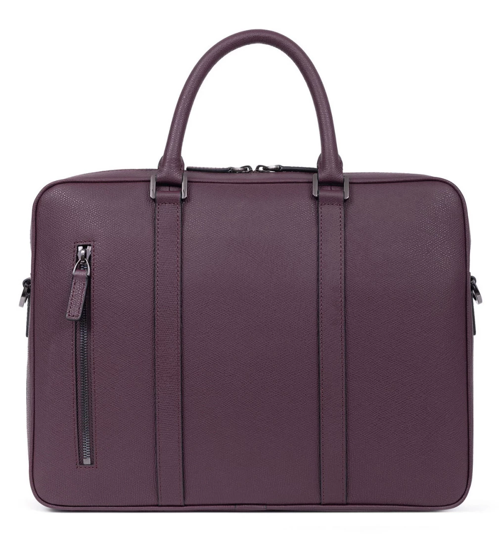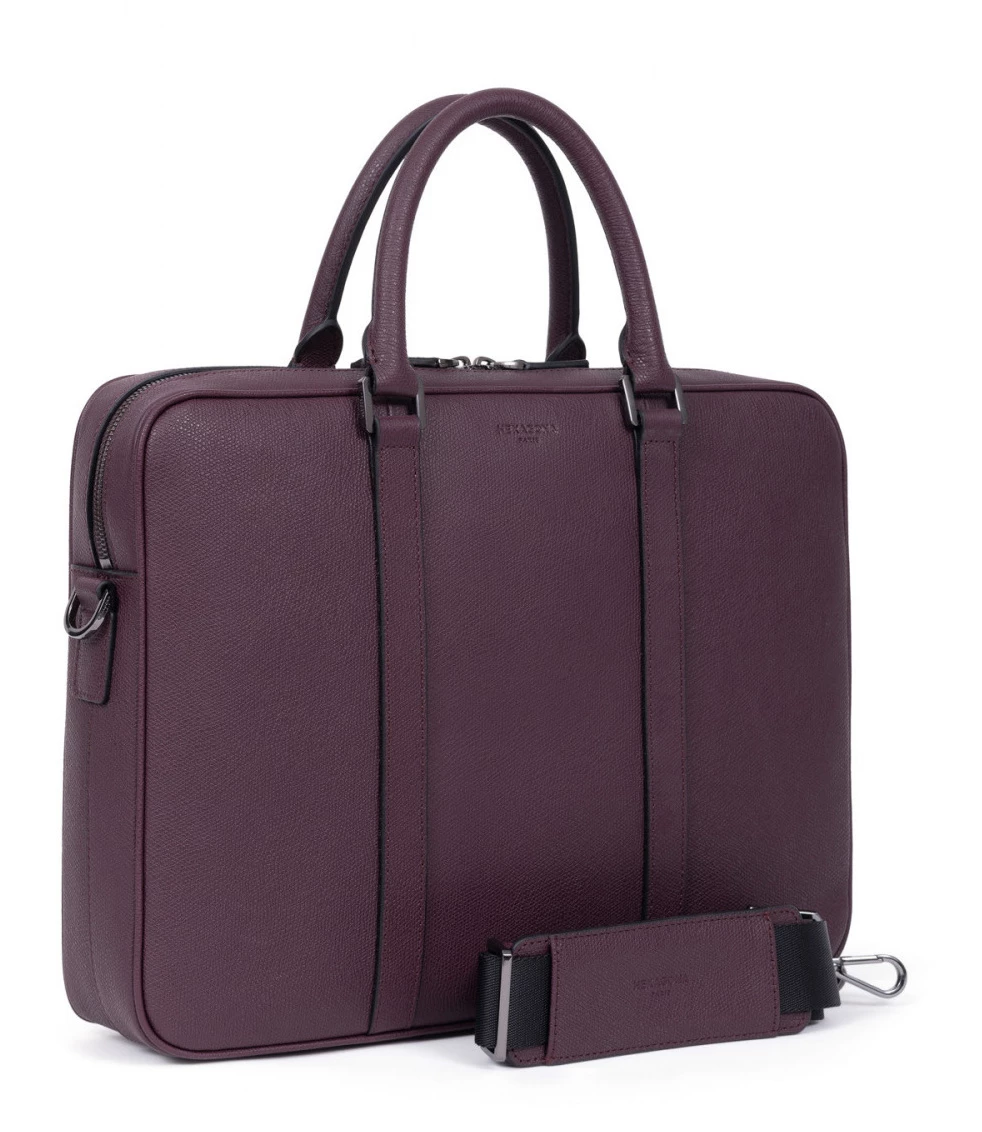 Porte documents 13 » et A4 en cuir de vachette premium grainé, haut de gamme exceptionnel, lignes épurées et finitions travaillées, Élégants et tendances, les modèles de cette collection séduiront les dandy modernes. Sac de voyage, sacoche ou porte-documents … Des incontournables à vous procurer au plus vite pour un look assurément chic ! Ce sac en cuir a deux poignées non réglables ( 35.5 cm ) et en supplément une bandoulière réglable et amovible avec un renfort d’épaule ( 94.5 cm mini / 153 cm maxi ) . Le sac se ferme à l’aide d’un zip à double curseur, il est entièrement doublé et possède une finition canon de fusil . IL est compatible ordinateur portable et format A4, très bien organisé , il a un compartiment principal avec un compartiment ordinateur rembourré, une poche plate zippée, trois poches plates (dont un compartiment téléphone) et deux espaces stylo et une petite poche arrière plate zippée.