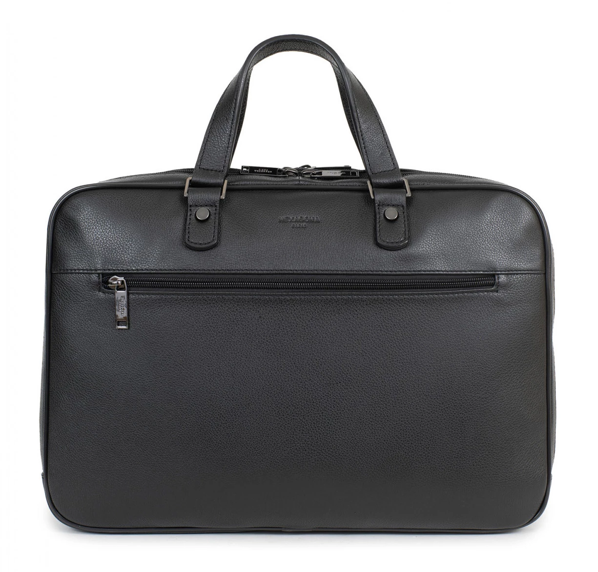 Porte documents compatible format 13″ et A4 en cuir de vachette noir grainé . Vous disposez de deux anses non amovible et d’une bandoulière en supplément réglable et amovible. Très bien organisé , vous avez deux compartiments, 1 poche et 1 passage trolley.