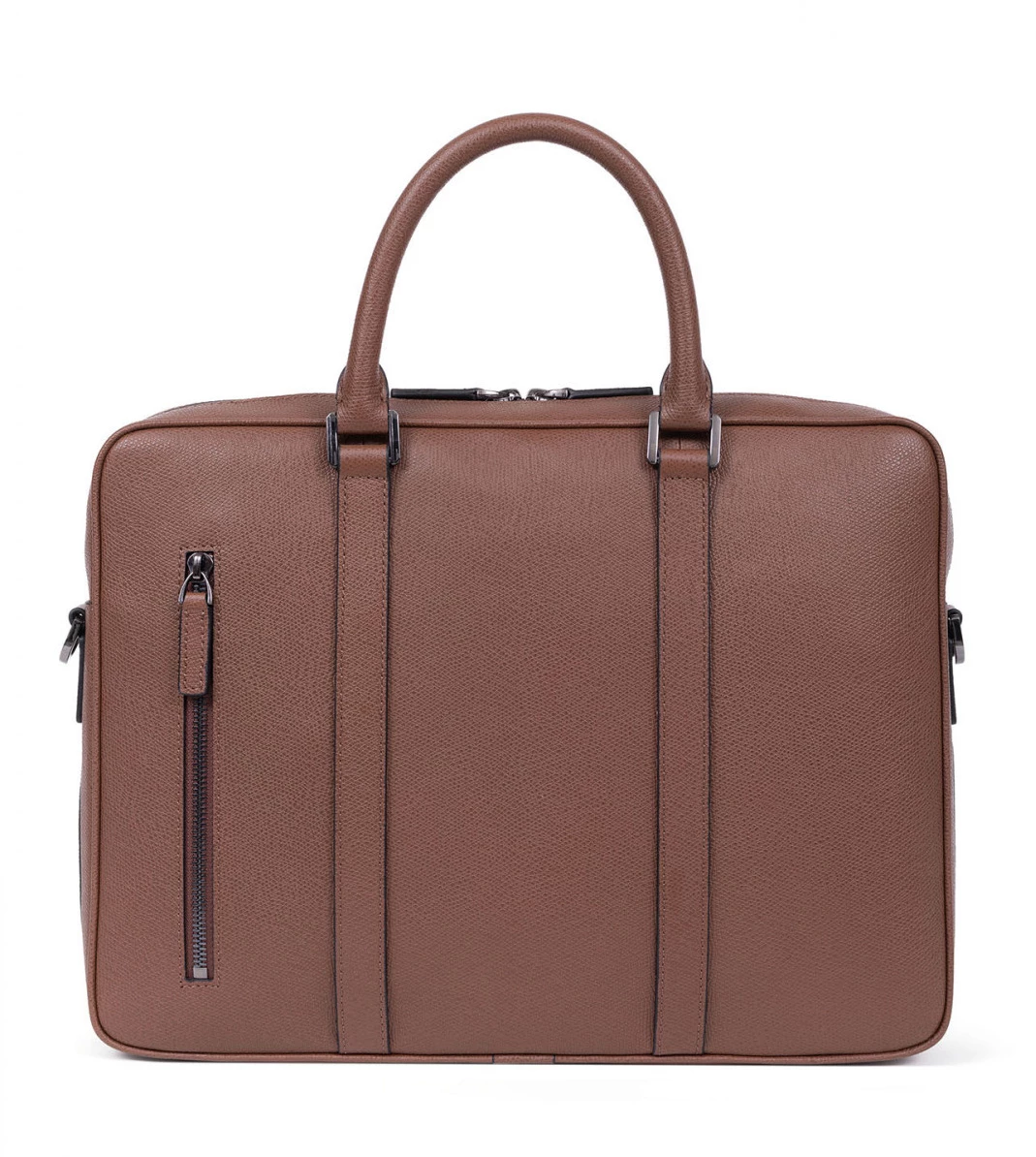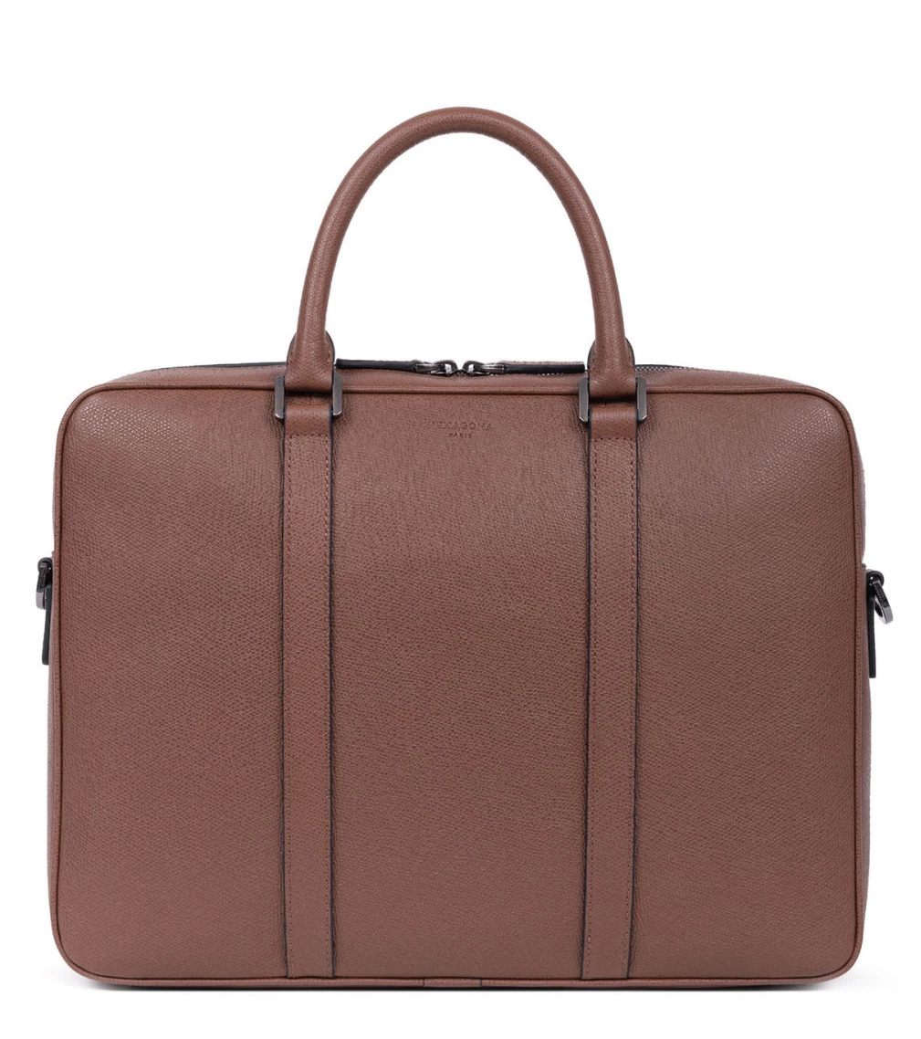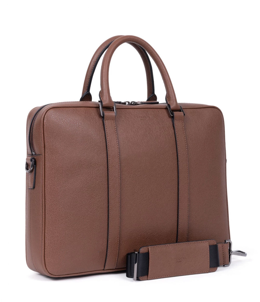 Porte documents 13 » et A4 en cuir de vachette premium grainé, haut de gamme exceptionnel, lignes épurées et finitions travaillées, Élégants et tendances, les modèles de cette collection séduiront les dandy modernes. Sac de voyage, sacoche ou porte-documents … Des incontournables à vous procurer au plus vite pour un look assurément chic ! Ce sac en cuir a deux poignées non réglables ( 35.5 cm ) et en supplément une bandoulière réglable et amovible avec un renfort d’épaule ( 94.5 cm mini / 153 cm maxi ) . Le sac se ferme à l’aide d’un zip à double curseur, il est entièrement doublé et possède une finition canon de fusil . IL est compatible ordinateur portable et format A4, très bien organisé , il a un compartiment principal avec un compartiment ordinateur rembourré, une poche plate zippée, trois poches plates (dont un compartiment téléphone) et deux espaces stylo et une petite poche arrière plate zippée.