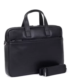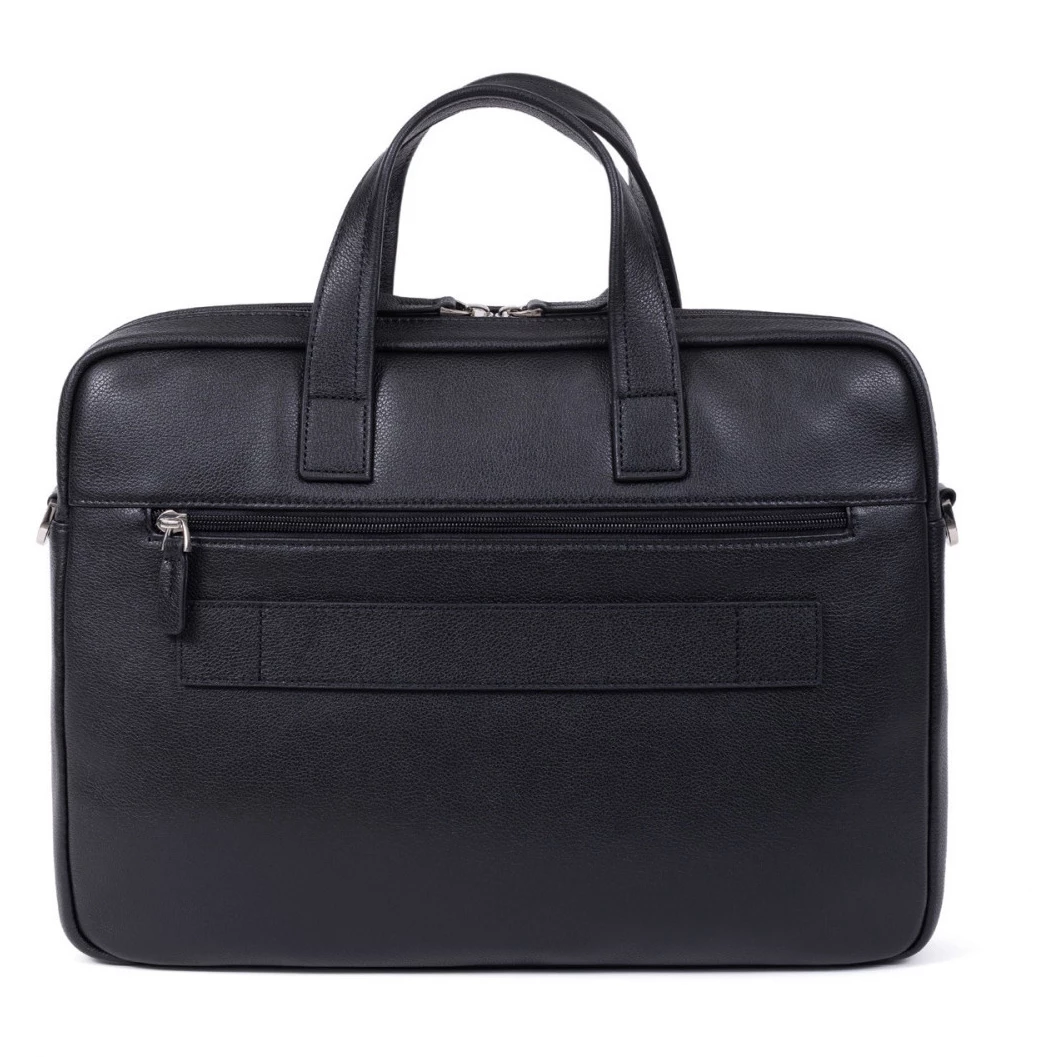 Porte documents 13″ et A4 en cuir de vachette grainé . Le sac se ferme à l’aide d’une fermeture à double curseur, il est entièrement doublé. Ses Finitions sont couleur argent brillant, ses poignées sont non réglables ( 34 cm) mais vous avez en ajout une bandoulière réglable et amovible avec renfort d’épaule ( 93 cm mini / 151 cm maxi ) . Son format est Compatible ordinateur portable et format A4, il possède un compartiment principal avec un compartiment ordinateur rembourré, une poche plate zippée, trois poches plates (dont un compartiment téléphone) et deux espaces stylo. A l’extérieur , il y a une poche avant zippée et une poche arrière plate zippée .