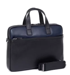 Porte documents 13″ et A4 en cuir de vachette grainé . Le sac se ferme à l’aide d’une fermeture à double curseur, il est entièrement doublé. Ses Finitions sont couleur argent brillant, ses poignées sont non réglables ( 34 cm) mais vous avez en ajout une bandoulière réglable et amovible avec renfort d’épaule ( 93 cm mini / 151 cm maxi ) . Son format est Compatible ordinateur portable et format A4, il possède un compartiment principal avec un compartiment ordinateur rembourré, une poche plate zippée, trois poches plates (dont un compartiment téléphone) et deux espaces stylo. A l’extérieur , il y a une poche avant zippée et une poche arrière plate zippée .