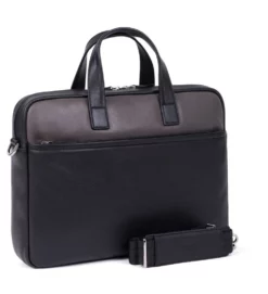Porte documents 13″ et A4 en cuir de vachette grainé . Le sac se ferme à l’aide d’une fermeture à double curseur, il est entièrement doublé. Ses Finitions sont couleur argent brillant, ses poignées sont non réglables ( 34 cm) mais vous avez en ajout une bandoulière réglable et amovible avec renfort d’épaule ( 93 cm mini / 151 cm maxi ) . Son format est Compatible ordinateur portable et format A4, il possède un compartiment principal avec un compartiment ordinateur rembourré, une poche plate zippée, trois poches plates (dont un compartiment téléphone) et deux espaces stylo. A l’extérieur , il y a une poche avant zippée et une poche arrière plate zippée .