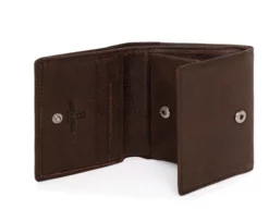 Porte-monnaie en cuir de vachette vieilli, Fermeture à pression, Doublure : Synthétique, Finitions argent brillant. A l’Intérieur : vous avez un volet, une poche plate, un porte-monnaie à pression, une poche billets et deux emplacements carte. Il est Compatible cartes de crédit.
