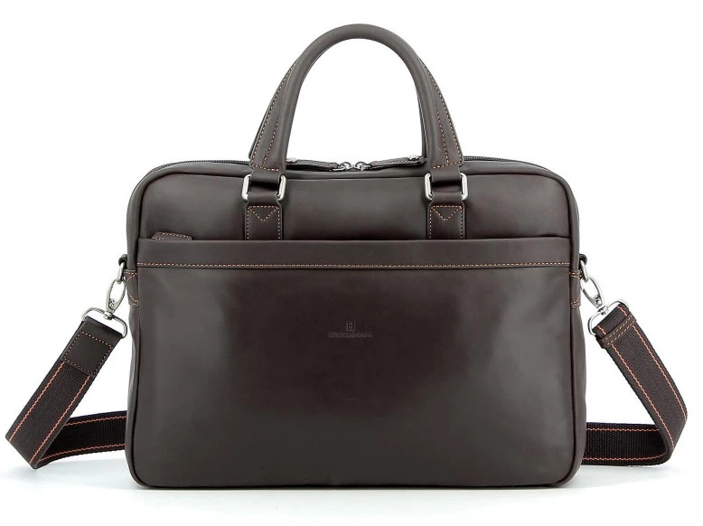 Cartable en cuir de vachette aspect gras. On aime son volume , suffisamment grand pour y glisser votre ordinateur 15″. Nombreux rangements, très bien organisé, pour apporter vos documents, papiers, etc .