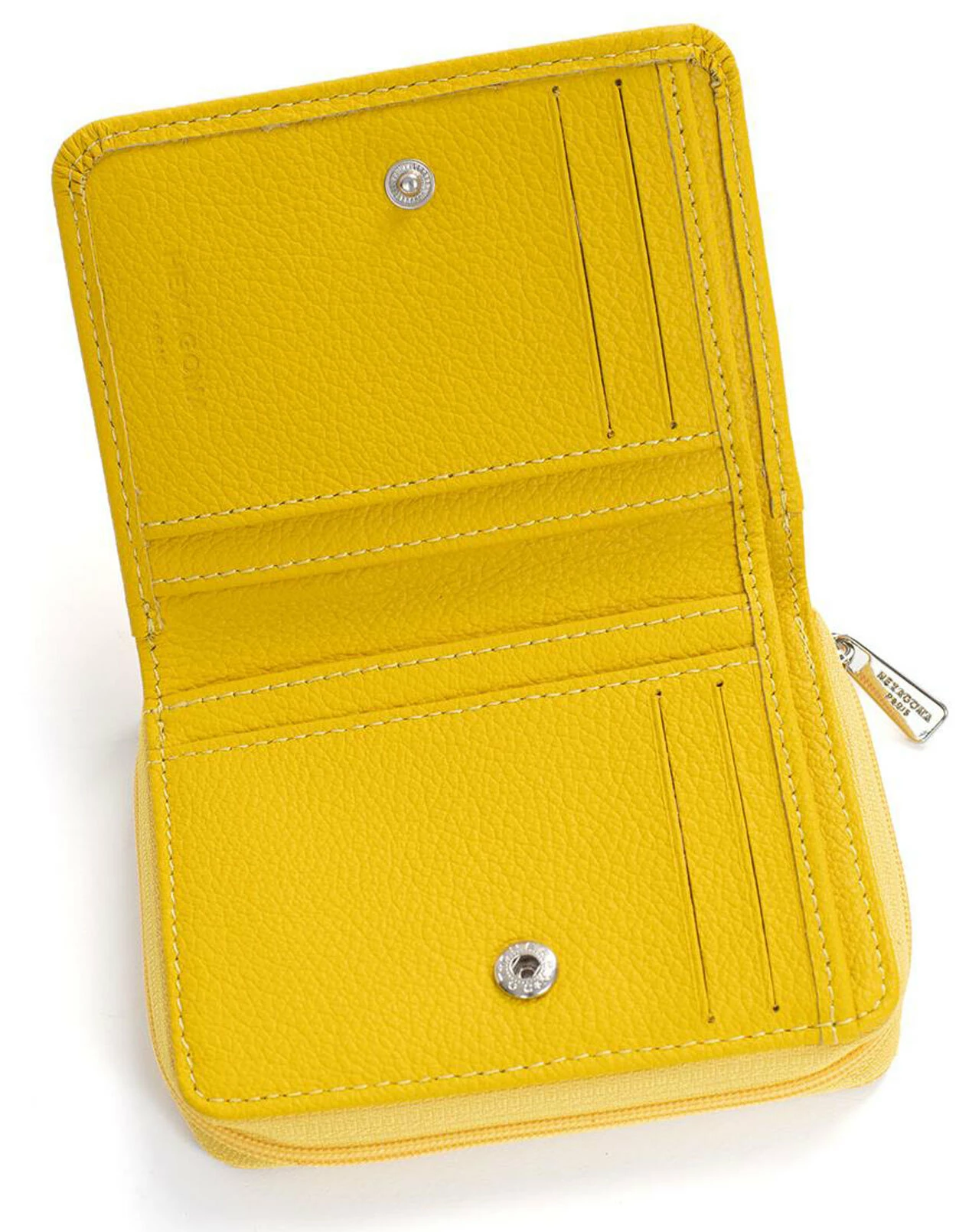 On aime la noblesse et la souplesse du cuir de vachette grainé sur ce petit portefeuille. Vous avez une bijouterie argentée dans une ligne intemporelle . Vous avez une fermeture à pression sur l’avant, à l’Intérieur, il y a 1 volet. 1 porte-monnaie zippé à 2 compartiments. 4 poches plates. 4 emplacements carte. 1 poche billets. Comptez une longueur de 9 cm pour une hauteur de 11 cm et une largeur de 3 cm.