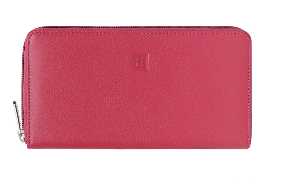 Portefeuille en cuir de vachette grainé , Fermeture zippée, Finitions argent brillant. On retrouve quatre poches plates, un porte-monnaie zippé et douze emplacements carte. Il est Compatible cartes de crédit, CNI, permis de conduire, passeport et carte grise.