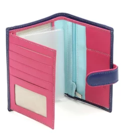 Portefeuille européen en cuir de vachette lisse . Vous avez une Fermeture patte à pression, Doublure : Synthétique, Finitions argent brillant. A l’Intérieur : deux volets, cinq poches plates (dont deux à vue transparente), un porte-monnaie zippé, une poche billets et cinq emplacements carte (dont un à vue transparente). Il est Compatible cartes de crédit, CNI, permis de conduire, passeport et carte grise .