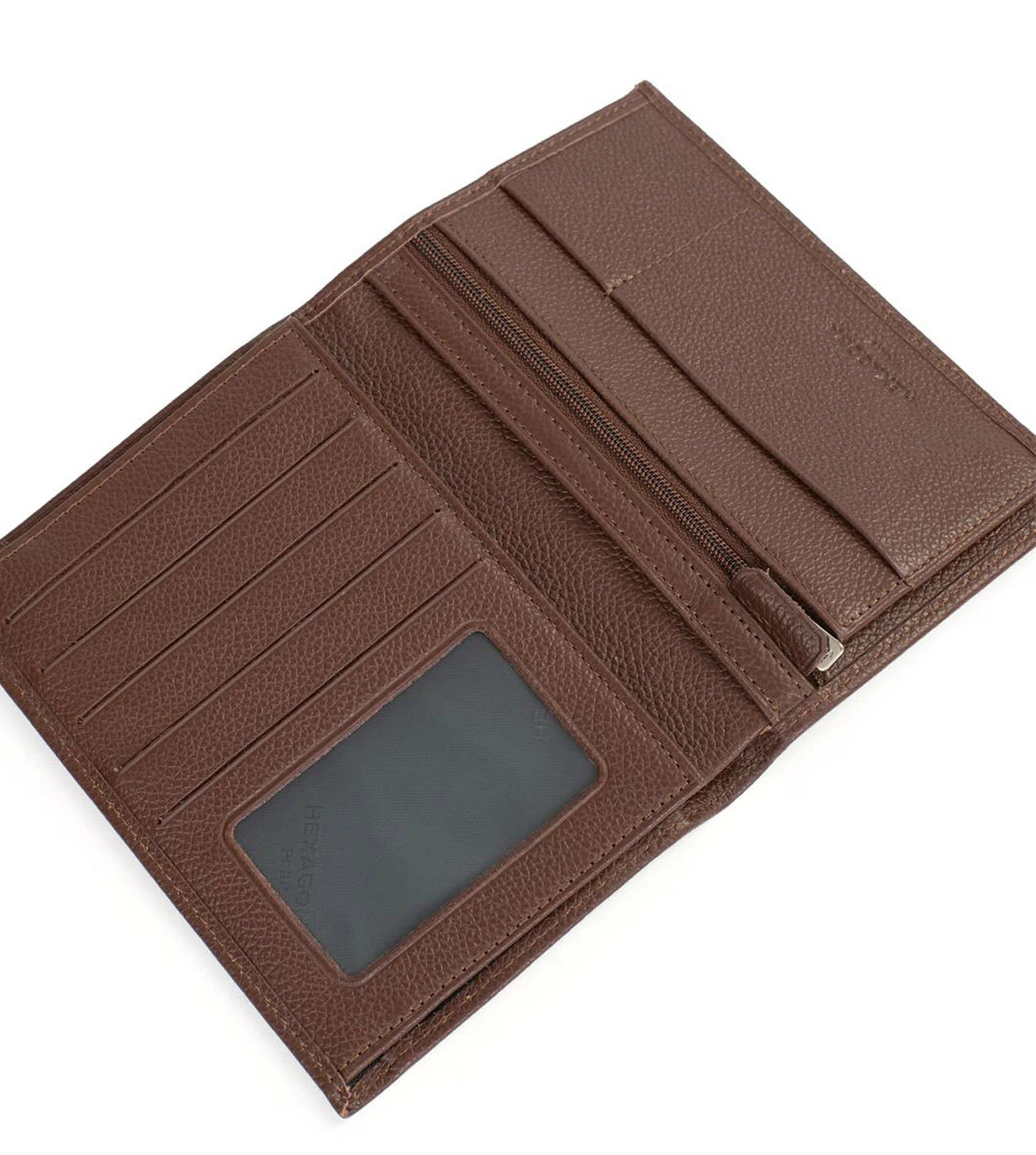 Portefeuille européen en cuir de vachette grainé noir, il est entièrement doublé, ses finitions sont argent brillant .Il possède deux volets, cinq poches plates (dont deux à vue transparente), un porte-monnaie zippé, une poche billets et cinq emplacements carte (dont une à vue transparente). IL est Compatible cartes de crédit, CNI, permis de conduire, passeport et carte grise.