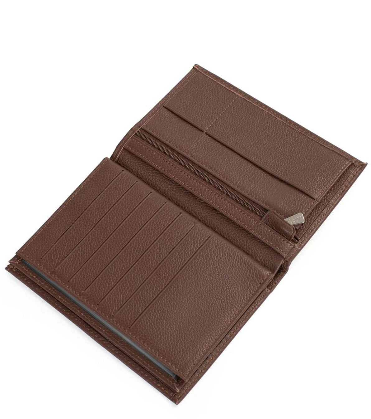 Portefeuille européen en cuir de vachette grainé, il est entièrement doublé, doublure synthétique.On lui retrouve trois volets, six poches plates (dont deux à vue transparente), un porte-monnaie zippé, une poche billets, deux emplacements carte (dont une à vue transparente).Il est Compatible cartes de crédit, CNI, permis de conduire, passeport et carte grise.