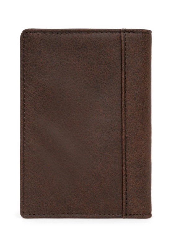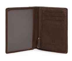 Portefeuille européen en cuir de vachette vieilli, Doublure : Synthétique, Finitions argent.L’Intérieur : il y a un volet, deux poches plates (dont une à vue transparente), un porte-monnaie zippé, une poche billets et trois emplacements carte. Il est Compatible cartes de crédit, CNI et permis de conduire.