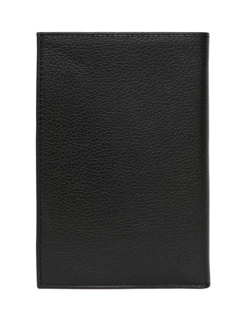 Portefeuille européen en cuir de vachette grainé noir, il est entièrement doublé, ses finitions sont argent brillant .Il possède deux volets, cinq poches plates (dont deux à vue transparente), un porte-monnaie zippé, une poche billets et cinq emplacements carte (dont une à vue transparente). IL est Compatible cartes de crédit, CNI, permis de conduire, passeport et carte grise.