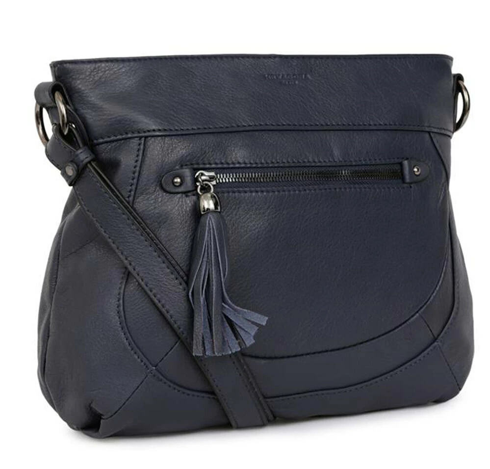 Sac en cuir de vachette de haute qualité, aspect lisse, facile d’entretien. Son coloris marine reste assez classique, facile à associer, indémodable. Vous porterez votre sac en cuir à l’épaule, sa bandoulière est réglable. Niveau rangement, on retrouve 6 compartiments, dont 4 avec une fermeture .