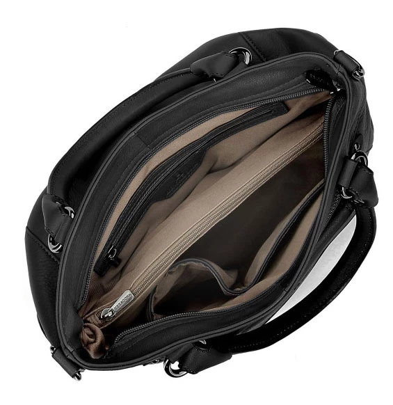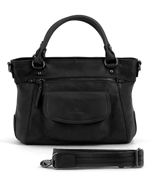 Joli petit sac en cuir de vachette de haute qualité de la marque Hexagona. On aime son coloris noir, classique. Vous le porterez principalement à la main et vous avez en ajout une bride de fournie avec le sac pour le porté à l’épaule. Niveau rangement, le sac cuir femme est très pratique, vous avez 7 compartiments dont 4 avec une fermeture .
