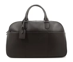 Sac de voyage en cuir de vachette de la marque Hexagona . Il possède une fermeture zippée à double curseur, vous avez des finitions métal canon de fusil sous le dessous . Pratique, vous le tenez à l’aide de ses deux poignets non réglables de 43 cms, mais vous avez également une bandoulière supplémentaire réglable, amovible avec un renfort d’épaule ( 95 cms minimum à 154 cms maximum ) . On aime son aspect avec son grain assez marqué façon buffle. Sur l’extérieur , vous avez une poche avant zippée et une poche arrière zippée. Sur l’intérieur, vous avez une doublure synthétique noir et un compartiment principal , une poche zippée et trois petites poches plates.