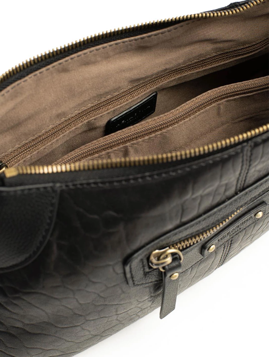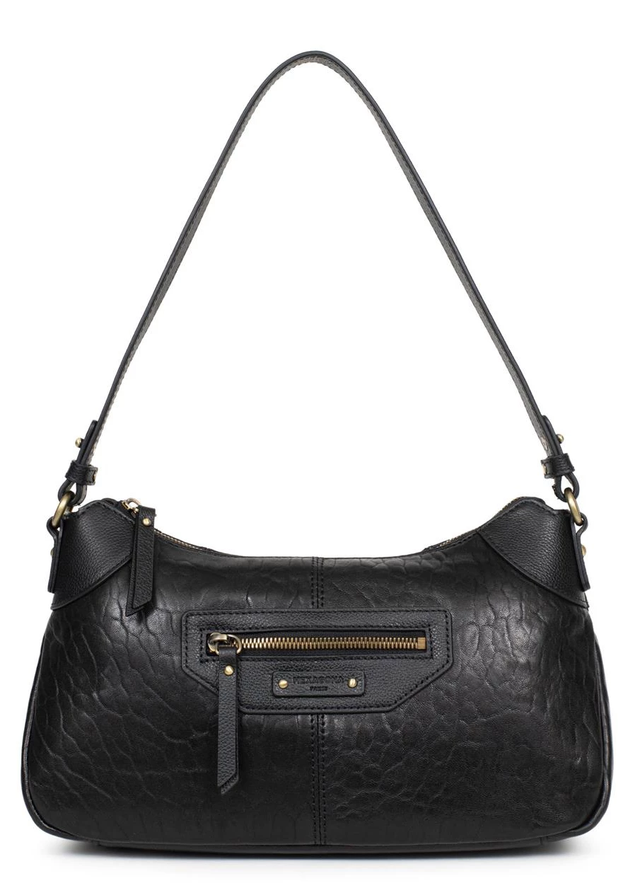Sac en cuir de mouton garni de cuir de vachette grainé, pratique format moyen . C’est un porté épaule , 1 anse non réglable amovible (61 cm) , ses dimensions sont L 31 x H 19,5 x P 10 cm.Vous avez une fermeture zippée, plus sécurisant. Sur l’Extérieur , on retrouve 1 poche avant plate zippée et 1 poche arrière plate zippée. Pour l’Intérieur , il y a 1 compartiment principal avec 1 poche de séparation zippée, 1 poche plate zippée, 2 poches plates (dont 1 compartiment téléphone). Et vous avez en complément 1 bandoulière réglable amovible (74 cm mini/132 cm maxi).