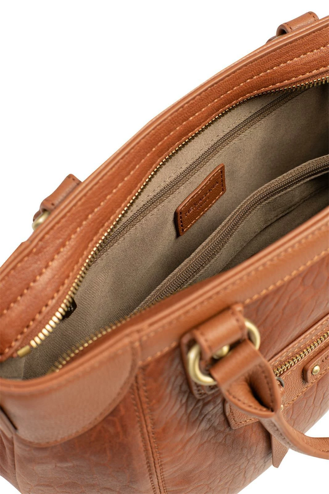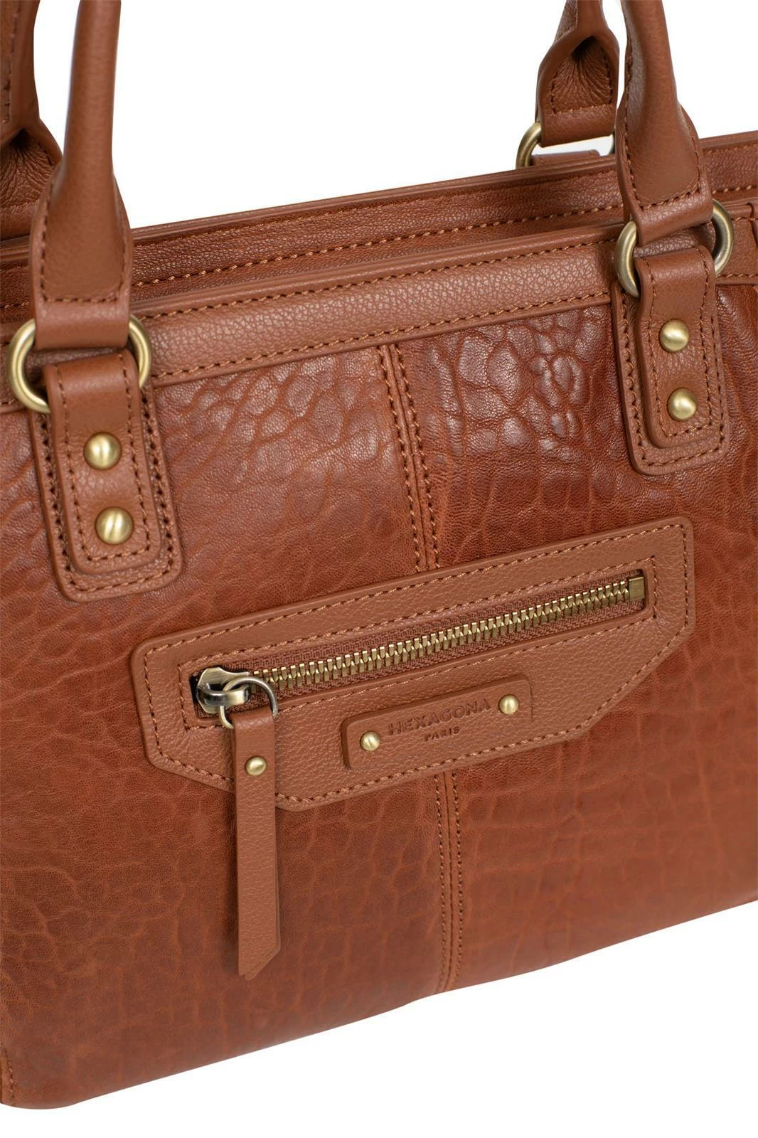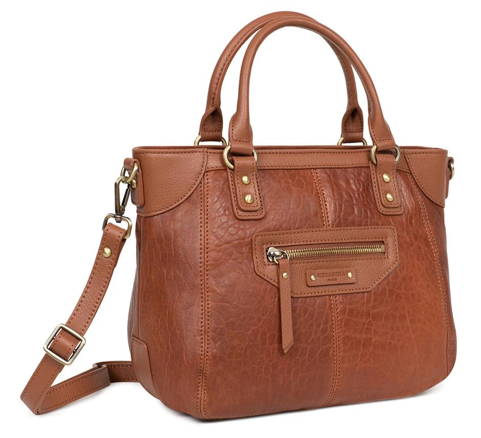 Sac à main en cuir de mouton garni de cuir de vachette grainé, ses dimensions sont L 33,5 x H 21,5 x P 15 cm. Le sac est fermé par un zip, vous avez une poche plate avant zippée et également sur l’arrière. A l’intérieur , il y a 1 compartiment principal avec 1 poche de séparation zippée, 1 poche plate zippée, 2 poches plates (dont 1 compartiment téléphone). Ses 2 poignées sont non réglables et non amovibles (35,5 cm), il y a 1 bandoulière supplémentaire réglable amovible (74 cm mini/130 cm maxi).