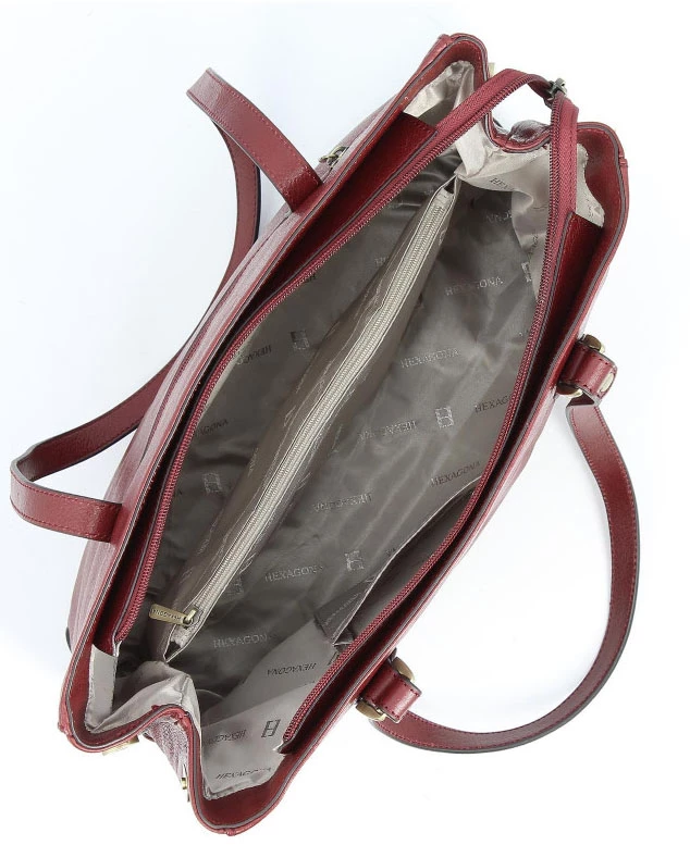 Grand sac en cuir de la collection Hexagona, on aime sa ligne classique . Son format est très pratique , avec suffisamment de rangements . Deux grands compartiments séparés par une poche zippée. Vous avez également une petite poche zippée et des compartiments pour le téléphone , papiers, etc.