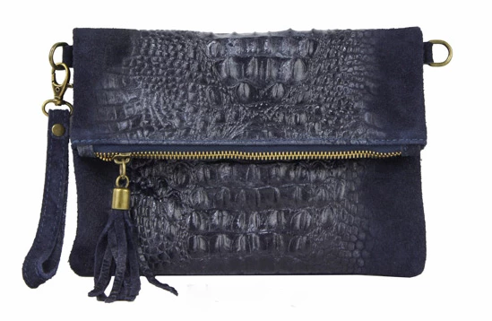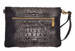 Petite pochette main en cuir de vachette pour femme. Pour plus d’originalité , le cuir est travaillé aspect cuir croco. Vous avez en ajout une bandoulière , vous pouvez ainsi la porter plus décontracté à l’épaule. Vous avez une fermeture zippée, une grande poche centrale.