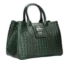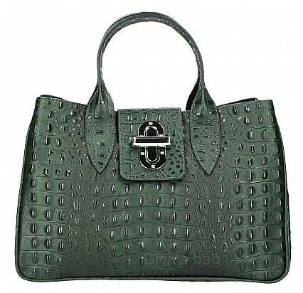 Sac à main en cuir véritable dans un look hors du commun avec son imprimé crocodile en cuir de veau véritable. Il possède une Fermeture éclair, ses accessoires sont en métal couleur nickel. Sa Structure est semi-rigide. A l’intérieur, on retrouve 1 poche pour téléphone portable, 1 Poche intérieure pour documents avec zip, 1 Compartiment double. Il est entièrement doublé en polyester. Sa bandoulière est amovible, comptez une hauteur de 24 pour une longueur de 36 cm et environ 17 cm de large.