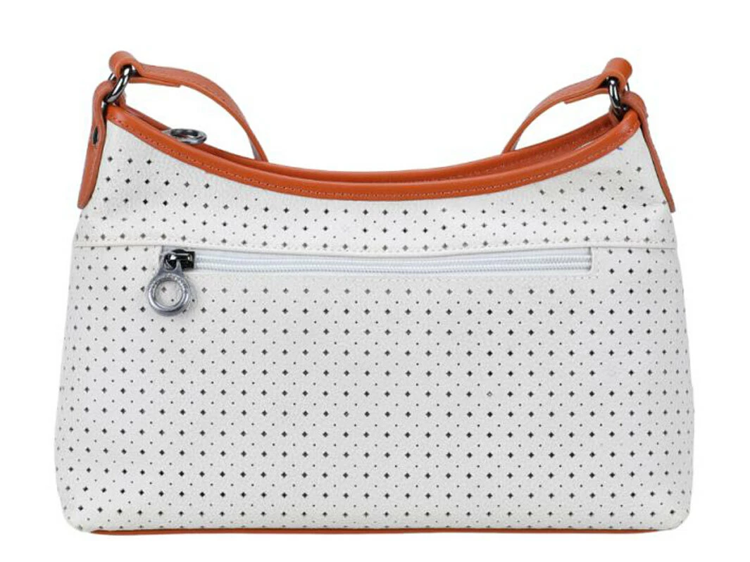 On aime sa ligne, sobre , un incontournable avec une promesse d’élégance et de résistance, à l’image de son cuir de vachette végétal en aspect perforé. Vous allez craquer pour ce joli sac travers au format demi-lune qui conviendra parfaitement pour une balade shopping ou vos soirées nocturnes.Il possède une fermeture éclair, 1 compartiment, 1 poche zippée interne, 1 poche au dos zippée, 1 bandoulière réglable.