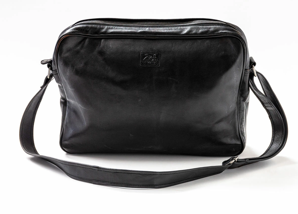 Sac bandoulière en cuir de mouton de la marque 24h Le Mans. Il possède un grand compartiment interne, une fermeture principale zippée. Vous avez 1 poche zippée sur le devant du sac et 1 poche zippée à l’intérieur du sac. Il y a une anse bandoulière, il pèse environ 850 gr et mesure 31 x 42 x 8 cm.