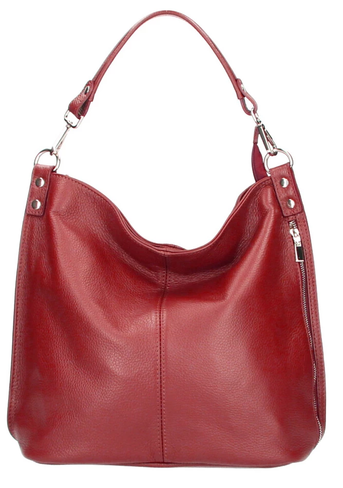 Sac à main en cuir de vachette aspect grainé pour femme. Grand format, pratique, 2 poches intérieures, 1 poche de séparation, 1 poche extérieur. Vous avez des zips fantaisie sur les cotés, pour lui donner plus d’originalité. Le sac en cuir se ferme à l’aide d’un zip, la doublure est en polyester.