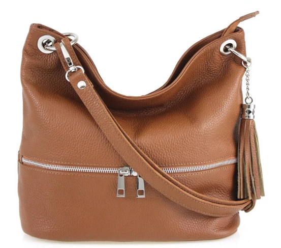 Sac à main en cuir de vachette aspect grainé , chic et sport. Ce sac en cuir se ferme à l’aide d’un zip, à l’intérieur, vous avez une poche de séparation zippée, deux grands compartiments, une petite poche zippée et deux petites poches ( portable, clefs , etc ) . La doublure est en polyester, les accessoires couleur nickel. Sur le dessus , on aime la fantaisie apporté avec ses zips, la petite chaine avec le bout de cuir à franges.