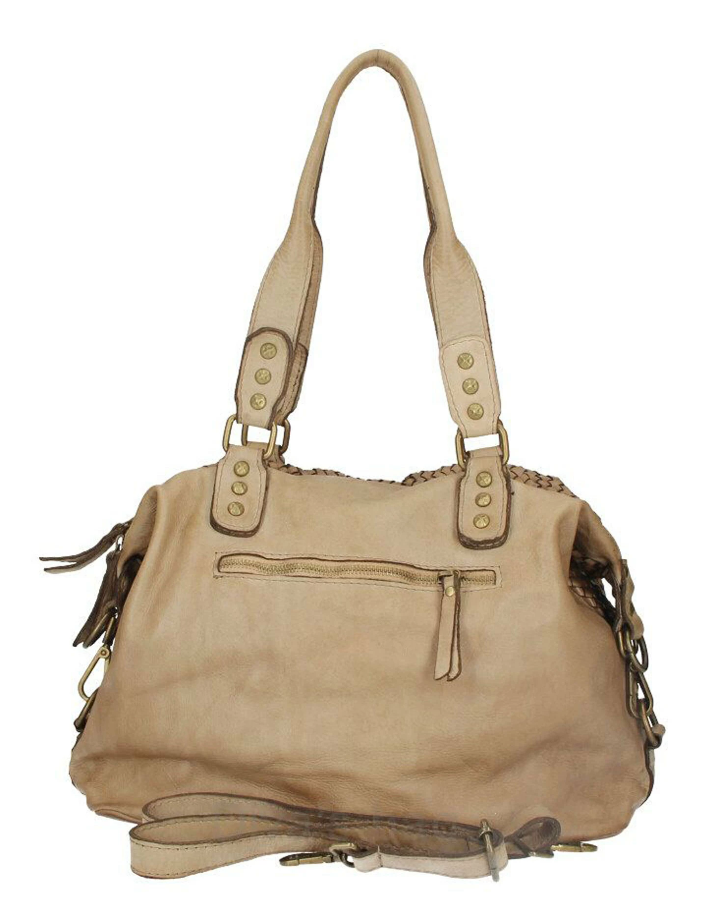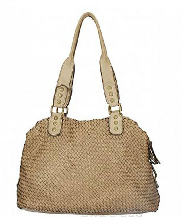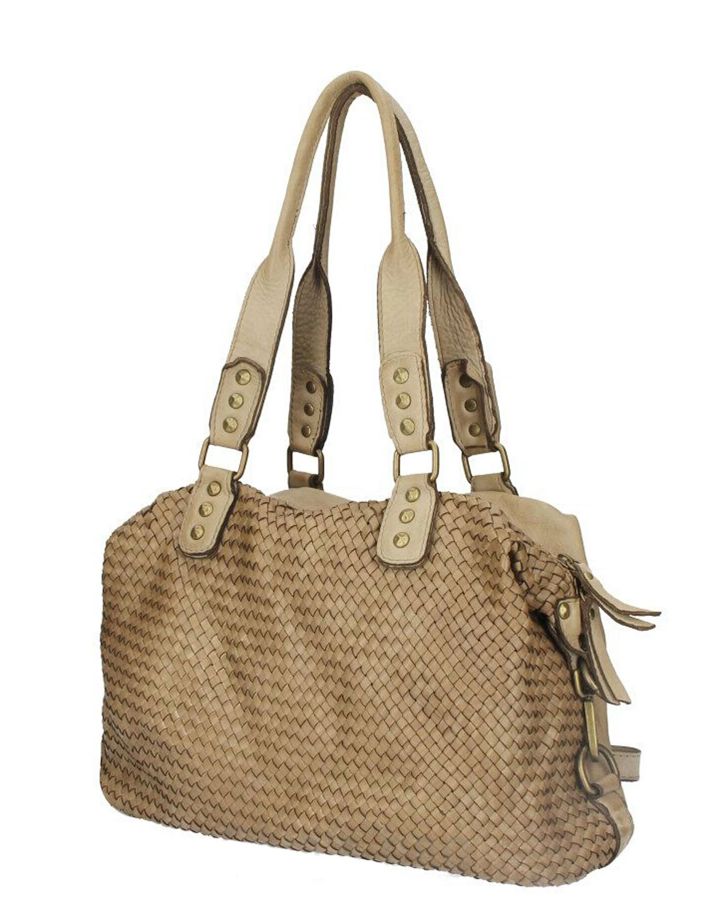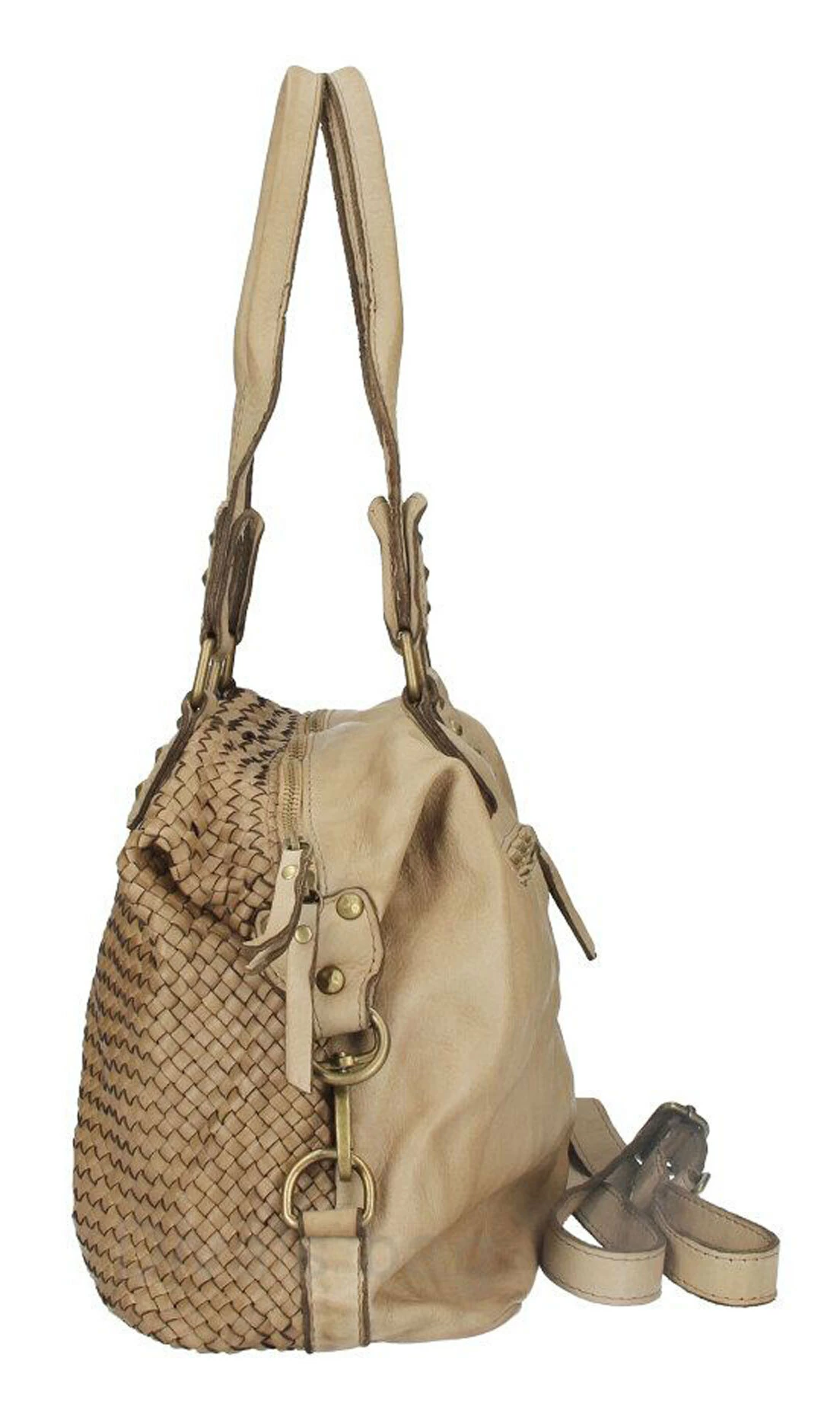 Maxi sac en cuir véritable de vachette tressé sur l’avant et lisse sur l’arrière . On aime son coté vintage avec sa teinte lavé pour un coloris plus vieilli. Pratique avec sa fermeture éclair,Le sac est entièrement doublé en polyester . Vous avez un grand compartiment principal avec une poche plate zippée et une poche pour le téléphone portable. Vous avez deux grandes anses fixes pour un porté épaule et une bandoulière amovible réglable pour un porté travers, bandoulière. Ses anses sont agrémentées de rivets et vous avez également une fantaisie avec une patte sur les cotés .Ses dimensions sont : 36cm x 26cm x 15cm (largeur x hauteur x profondeur), pour un poids d’environ : 0,9 kg.