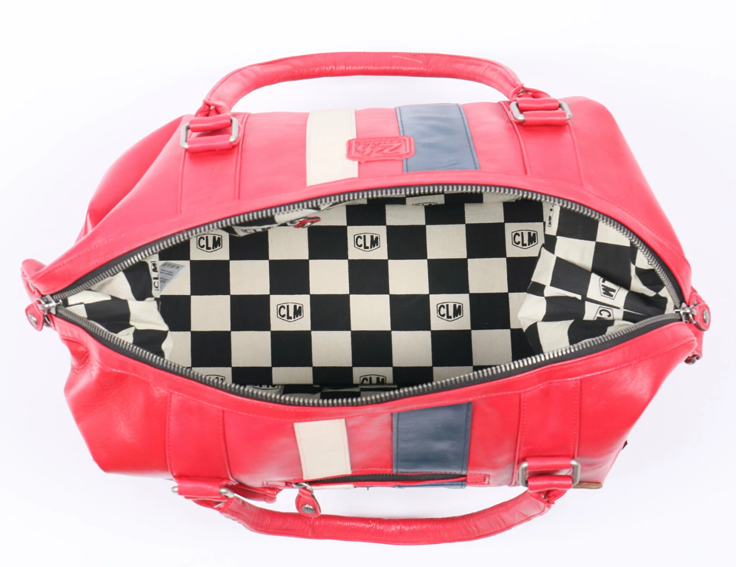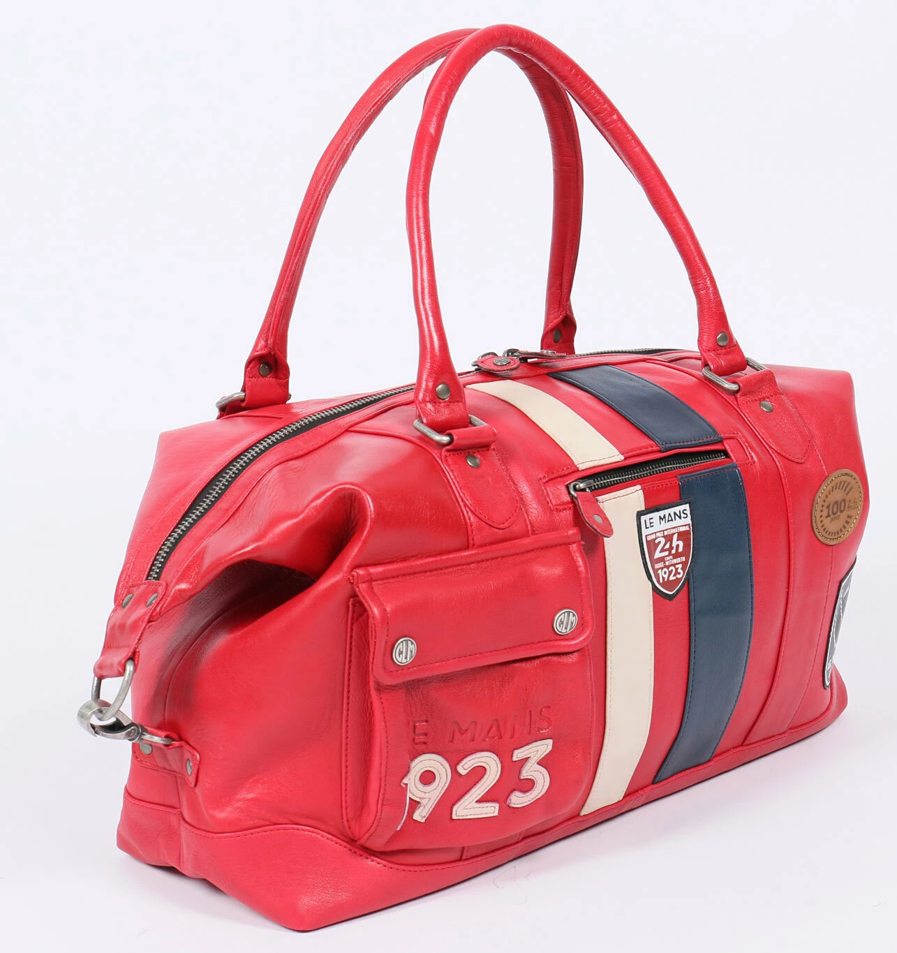 Sac de Voyage Classic Legends Motors 24H Le Mans, c’est un Sac commémoratif au centenaire des 24H du Mans de 1923.Il est 100% Cuir d’agneau, vous avez les bandes racing de couleurs. On retrouve 3 écussons à l’avant du sac « 1923 24h Le mans ». Il y a une poche à l’avant à pressions, « Le Mans 1923 » est brodé sur la poche avant.Il y a également une poche extérieure zippée sur l’avant, une poche intérieur avec une fermeture éclair. Sa doublure à damier est 100% Coton . On retrouve un format pratique , pour un déplacement , un week end , comptez une longueur de 54 cm pour une hauteur de 47 cm sur 24 cm de profondeur.