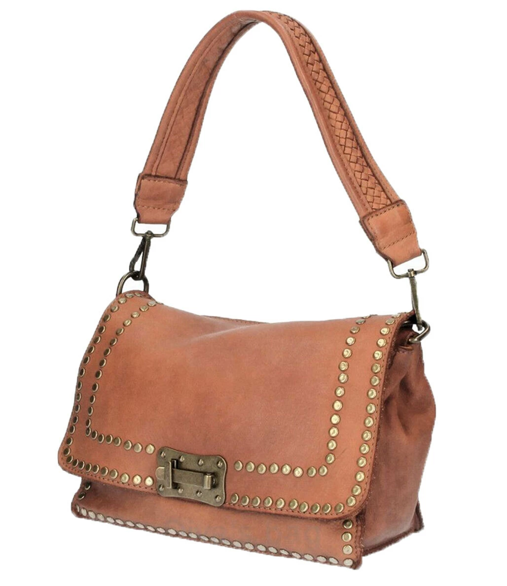 Sac à main en cuir vintage, dans un look original, unique . On aime sa bandoulière tressée, ses petits clous, et son fermoir. Il a une fermeture éclaire et un rabat. A l’intérieur , juste un compartiment unique avec une poche intérieure zippée, poche pour téléphone portable . Il est doublé en polyester, si besoin , vous avez une bandoulière réglable. Comptez un poids d’environ 0.7 kg, et des dimensions de 25cm x 15cm x 10cm (largeur x hauteur x profondeur).