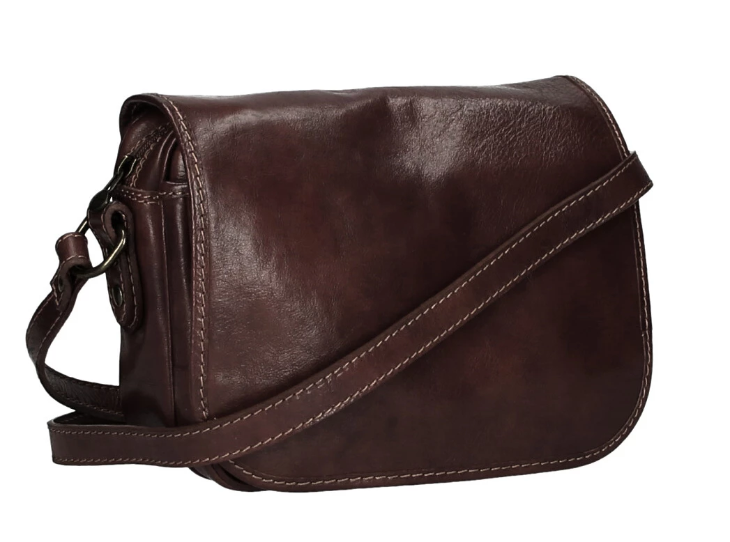 Sacoche en cuir de vachette véritable assez épaisse . Il se Ferme à l’aide d’un rabat à pression, le sac se ferme par un zip. Il a une Bandoulière en cuir qui est réglable. A l’intérieur, vous avez 1 compartiment avec à l’intérieur une petite poche zippée.Sur l’avant , vous avez également un compartiment ouvert . Ses Dimensions sont : 25cm x 18cm x 10cm (largeur x hauteur x profondeur) Poids: 0,7 Kg
